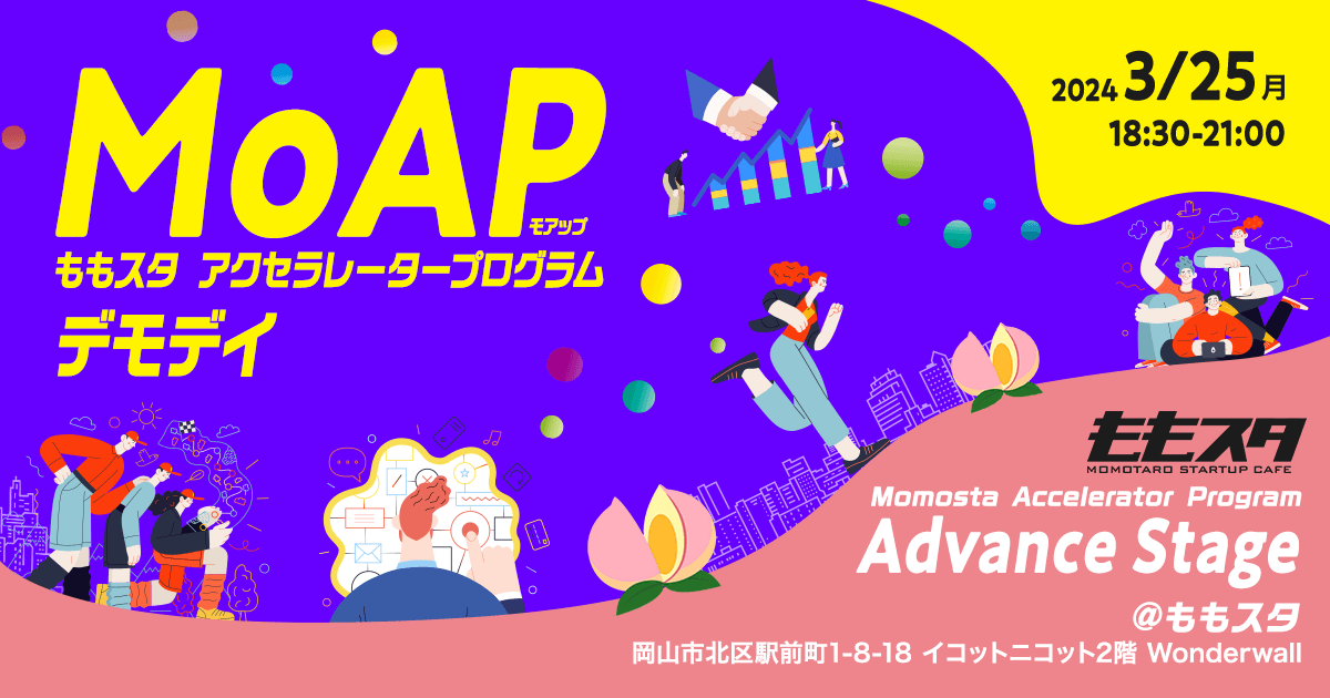 岡山市とCrewwによるアクセラレータープログラム『MoAP(ももスタアクセラレータープログラム“モアップ”)〜Advance Stage〜』デモデイ開催のお知らせ