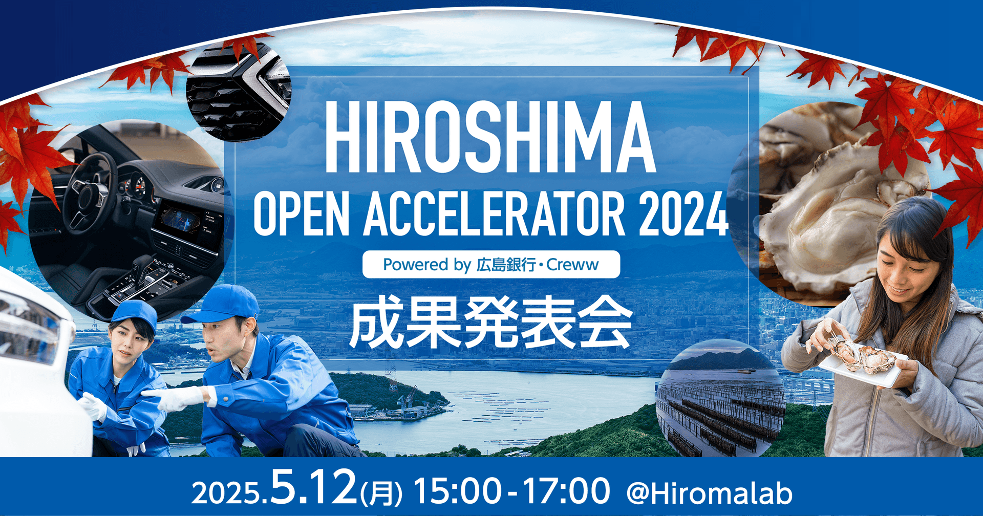 Creww株式会社(代表取締役:伊地知 天、以下「Creww(クルー)」)と株式会社広島銀行(代表取締役頭取:清宗 一男)は、スタートアップとのオープンイノベーションを通じて地域社会の持続可能な経済発展に貢献していくことを目的にした『広島オープンアクセラレーター2024』(以下、本プログラム)の成果発表会を2025年5月12日に開催します。