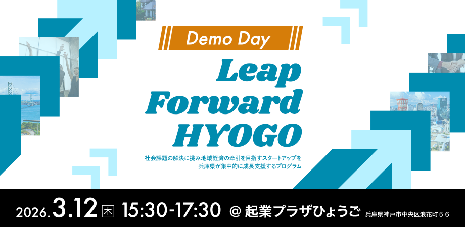 2025年度より、社会課題の解決に挑み地域経済の牽引を目指すスタートアップに対して、支援機関や金融機関等との強力な連携による集中的なハンズオン支援を行うことで、スタートアップが加速度的な成長を果たし、兵庫県を代表する企業へと飛躍することを目指し実施してきた『Leap Forward HYOGO』のプログラム参加企業5社の1年間の成果発表と、2026年の挑戦を表明するデモデイを開催します。