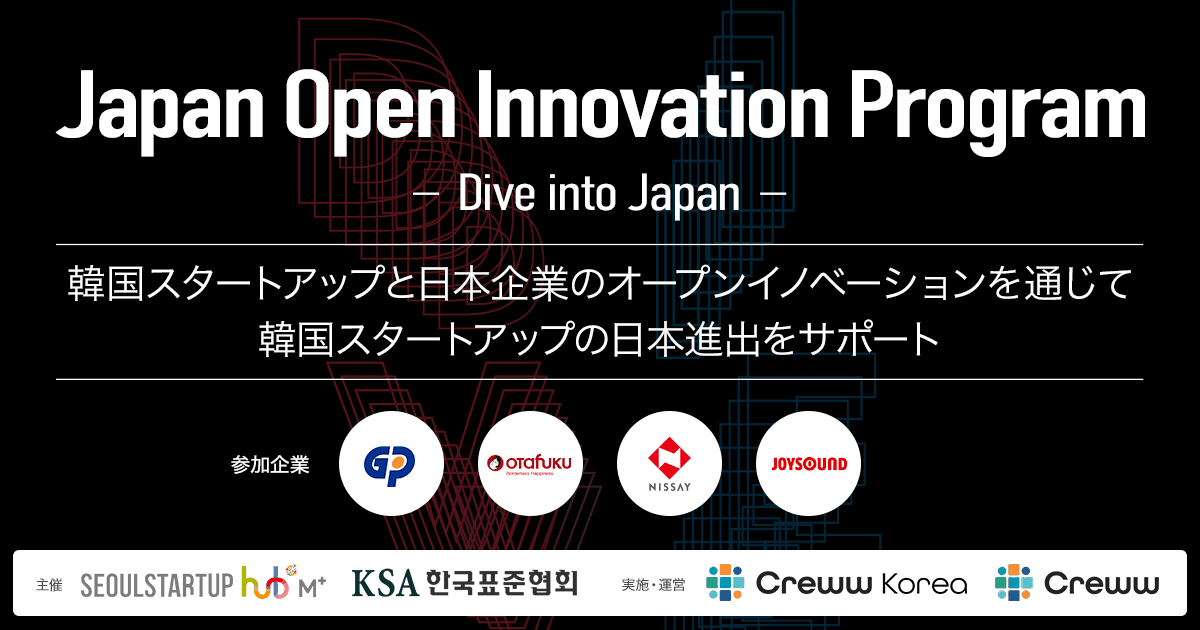 Creww、韓国スタートアップとのオープンイノベーションプログラム『Japan Open Innovation Program ~Dive into Japan~』実施決定! 〜昨年度に続き、韓国の有望スタートアップと日本企業4社との協業を支援します〜